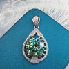 6 Carat Blue Green Round Cut 4 Prong Beaded Water Drop VVS Moissanite Necklace
