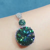 16 Carat Dark Green Round Cut Two Stone Subtle Halo VVS Moissanite Pendant Necklace