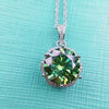 6 Carat Bluish Green Round Cut 6 Prong Subtle Halo Certified VVS Moissanite Necklace