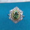 1 Carat Green Oval Cut Floral Double Halo Straight Shank Certified VVS Moissanite Ring