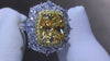 5 Carat Cushion Cut Moissanite Ring Deep Yellow VVS Two-tone Double Halo Pave