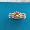 1 Carat Round Moissanite Ring Bead-set Scalloped Pave Two-tone Certified VVS Vivid Yellow